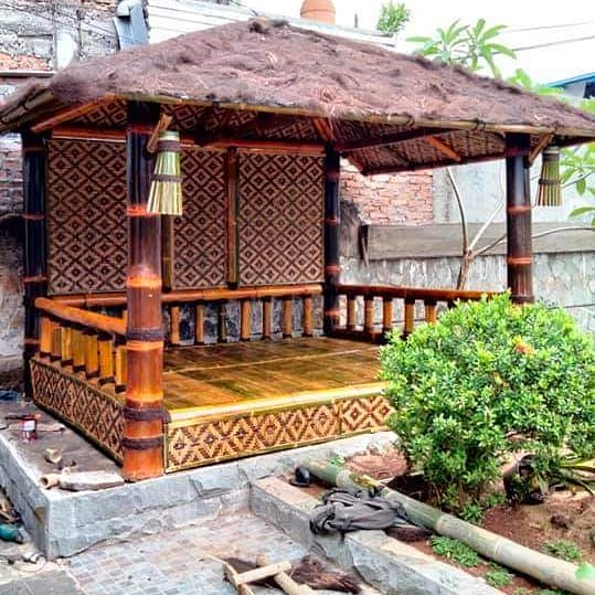 Rumah kayu tentunya dapat digunakan sebagai tempat tinggal dan saung (gazebo) sebagai pelengkap yang pas.