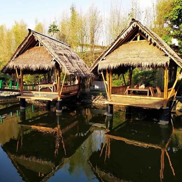 Saung (gazebo) dan rumah kayu dapat difungsikan sebagai tempat ibadah yang nyaman dan sejuk.