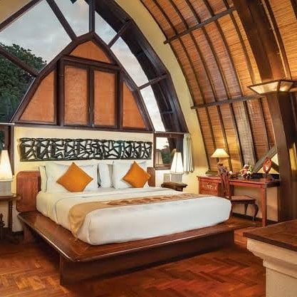Konsep tradisional namun tetap menarik untuk rumah makan yang menggunakan saung (gazebo) atau rumah kayu.